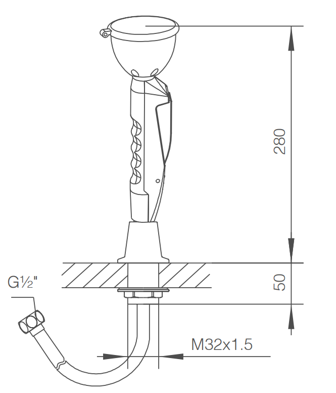 Đầu rửa mắt: Đồng dày phủ lớp nhựa epoxy và cao su mềm, nước ra qua xử lý giảm áp thành cột nước bọt bọt, tránh làm tổn thương mắt