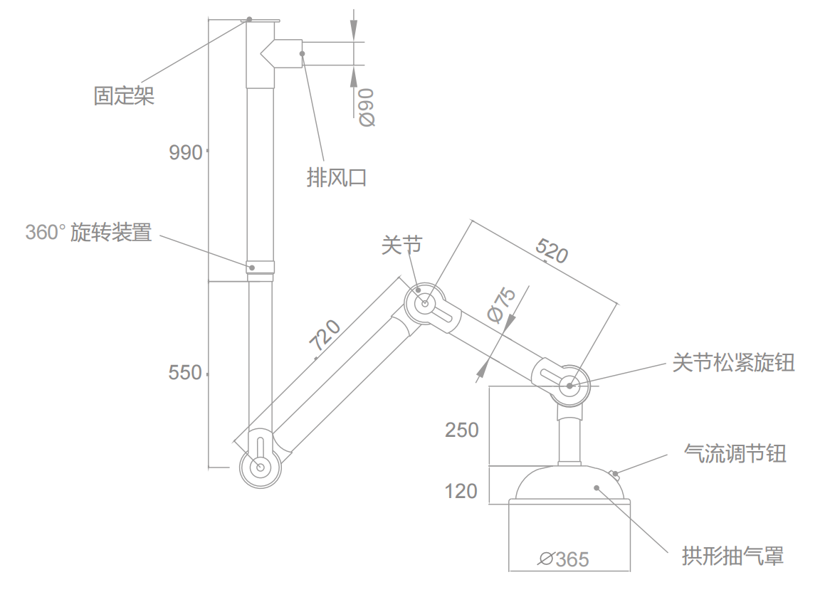 Thiết bị xoay độc quyền 360°: Lấy giá cố định làm trung tâm, bán kính hoạt động tối đa lên đến 1600mm